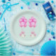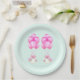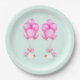 Dulces placas para bebés con mellizos chicas y globos rosados.