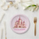 Un plato de papel rosa para chicas con un diseño de princesa adorable con espacio para personalizar un nombre. Ideal para servir comida en una celebración de cumpleaños con temática de princesa.