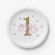 Plato De Papel Chicas rosados y de oro UN primer Fiesta de cumple