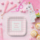Plato De Papel Chicas rusos Rosados Gingham Check Baby Shower