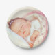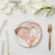 Chicas vintage de placas de papel para bebés con adorables bebés adormilados y adorables envueltos en blandas mantas rosas y florales sobre un suave fondo vintage. Puede añadir texto en el estilo de letra de su elección para personalizar estos dulces placas de papel para bebé vintage.