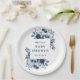 Con un diseño floral de azul marino elegante, estos platos de papel chic para fiesta de bebé se pueden personalizar con su información. Diseñados por Thisisnotme©