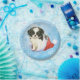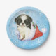 Celebra la temporada de fiestas con un adorable cachorro chino japonés sentado en un sombrero de Santa en medio de copos de nieve. ¡Felices Howlidays!