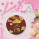 Golden Auspicious clouds + golden Horse paper-cut, golden "Year of the Horse" (original handwriting), golden greeting in Chinese and large golden 2026 original written in calligraphy style + Horse ideogram (font). All elements can be moved you as you wish. Design on party paper round plate with gradient dark red background. Matching greeting card, holiday postcard, invitation, craft supplies, party supplies and more (soon)... Perfect for a traditional and modern Chinese New Year of the Horse 2026.