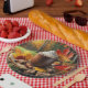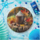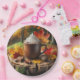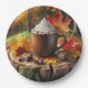 Plato De Papel Chocolate caliente otoñal sobre el tronco del árbo