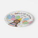 Haga especial el cumpleaños de su chocolate & tan Cockapoo/Cavapoo con nuestro adorable diseño de temática canina con un gorra fiesta y un globo. Personaliza este divertido plato de papel de cumpleaños con el nombre y edad de tu amigo peluche para una celebración de cola!