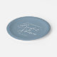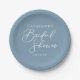 Un plato de papel chic azul polvoriento para una fiesta de despedida de soltera de verano junto al mar. Personalice este decorado gris azul claro con tipografía minimalista elegante para que coincida con el esquema de color de la novia tranquila.