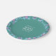 Platos de papel atrevidos para despedida de soltera con estilo bohemio retro y patrón de mandala floral en verde turquesa, azul agua y violeta rosa.