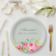 Plato De Papel Chorro de Verde Rosa Peonía Desayuno de Novia
