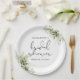 Este elegante plato de papel para ducha de novia con follaje botánico puede ser personalizado con su información en tipografía chic. Diseñado por Thisisnotme©