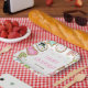 This cute and fun paper plate features iced cookies with adorable characters such as a snowman, reindeer and Santa Claus. Holly, candy cane and snowflakes add a festive touch. The text combines handwritten script and sans serif fonts for a stylish and modern look. This is perfect for a Christmas themed birthday party.