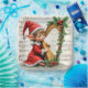 A cute Christmas sprite delicately playing a harp, set against a backdrop of beautiful sheet music