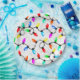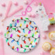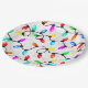 Colorful Christmas string lights with red, orange, yellow, light blue, pink, aqua, and green colors on a black cord in the snow. The retro lights my family used when I was a child inspired me to design this pattern. The snowy background is from an actual photograph. It's shown here on festive paper party plates that you can customize any way you like. This unique string lights in the snow design is great for any holiday party!