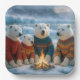 Plato De Papel Christmas Polar Bears Around a Bonfire