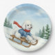 Plato De Papel Christmas Poodle Sledding, Paper Plates