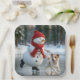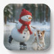 Plato De Papel Christmas Snowman Ice Skating With Dog