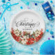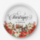 Christmas Typography and Family name Poinsettias White Paper plate.