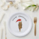 These holiday paper plates depict a tabby cat wearing a christmas santa hat and performing a yoga tree pose. The greeting is simply "MERRY CHRISTMAS" or you can edit this to suit.