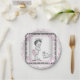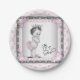 Adorables platos de ducha de bebé princesa con delicado encaje rosa y blanco y fondo de lazo rosa. Estos adorables platos de papel para ducha de bebé princesa se pueden personalizar con texto en el estilo de letra y color de su elección.