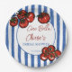 Ciao baby Pequeño tomate rayas azules plantilla de platos de papel personalizados para ducha de novia italiana, ducha de novia al estilo mercado de agricultores platos de papel impresos, decoración de mesa personalizada para ducha de novia italiana, platos de papel para ducha de novia con tomate cherry, tomates dibujados a mano , suministros para fiesta de ducha de novia gran milenario