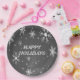 Plato De Papel Cielo negro con copos de nieve blancos y grises, Z