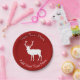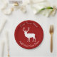 Silueta blanca de un macho. De un grabado del vintage de un ciervo común europeo. El color de fondo rojo es adaptable.