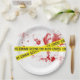 Novedad diversión en la cinta del crimen policial, no cruzar, placas de papel con detalles de salpicaduras de sangre de Ricaso - ideal para fiestas de misterio de asesinato o cumpleaños de la policía y fiestas de retiro