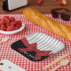 Plato De Papel Cinta Roja y Franja Moderna Elegante Personalizada