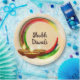 El diseño del Diwali incluye tres diyas en un lavabo marrón acuarela y un círculo de color arcoiris colorido.