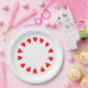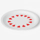 Formas de corazón rojas en un círculo en el borde del plato. Las partes inferiores de las formas de corazón apuntan hacia el centro.