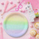 Plato De Papel Círculos de Arcoíris Pastel en Círculos