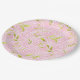 Platos de papel de primavera con círculos rosas. El diseño se puede transferir a las servilletas de papel a juego.