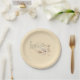 Placa de papel fiesta mostrada en un bonito color de champán con un diseño impreso de cisnes de amor. Personalizar este plato o compra como está. También ofrecemos servilletas de papel y un libro de visitas en nuestra tienda.