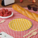 Plato De Papel Citrus cream checkered board pattern
