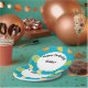Estas placas de papel presentan limas, limones y naranjas sobre un fondo azul verde azulado.