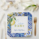Este elegante plato de papel higiénico neutro para uso en género "Ciao Baby" presenta un fondo blanco con azulejos azules mediterráneos y limones/cítricos en acuarela. Personalízalo para tus necesidades. Puedes encontrar productos coincidentes en mi tienda.