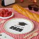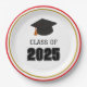 Tira el fiesta perfecto para tu graduado. Estos platos tienen un tapón de graduación con mango rojo y dorado con la impresión "Clase de 2025".