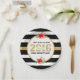 Plato De Papel Clase De Bandas Negras Y Blancas Purpurinas De Oro