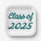 Placa de papel de graduación con clase de 2025 en texto verde 3D. Disponible en varios estilos y tamaños.
