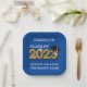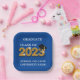 Elegante y moderna Clase de Graduación de 2023 en azul personalizable para coincidir con los colores de la escuela. El diseño presenta un diseño de letras metálicas en 3d para el año 2023, decorado con un tapón de graduación negro tradicional.