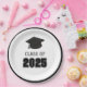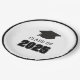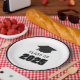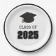 Tira el fiesta perfecto para tu graduado. Estas placas tienen un gorro de graduación con mango blanco y negro con la impresión "Clase de 2025".