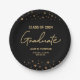 Personalice las placas de papel de graduación de esta clase de 2021 para el fiesta de posgrado. Con una impresión de confeti dorado sobre fondo negro. Tipografía moderna de estilo manuscrito para la palabra "Graduado". Celebra una fiesta de graduación en interiores o exteriores con estos platos de papel personalizado. Úsalo para fiesta de celebración de graduación de secundaria, universidad o universidad. Un toque personal para celebrar el graduado y deleitar a los invitados.