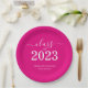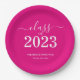Elegante y elegante oferta de fiesta de graduación de personalizado. Celebra el logro del graduado con estilo con este moderno plato de papel de la fiesta de graduación. El diseño presenta las características "Clase de 2023" en un elegante tipo de letra en blanco sobre un fondo rosa negrita. Personalice este producto añadiendo el año de graduación, el nombre del graduado y la escuela o cita favorita. Fácil de personalizar. Se dispone de material para fiestas de graduación coincidente. ¡Enhorabuena!
