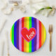 Plato De Papel Clásicas rayas arcoiris con colores cardíacos