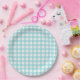 Plato De Papel Clásico Gingham Check Plage Pattern Light Blue