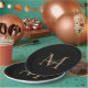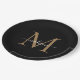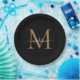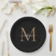 Plato De Papel Clásico Negro Dorado Monograma Moderno Nombre Letr