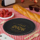 Stylish elegant custom graduation party supply! Celebrate the graduate's accomplishment in style with this trendy graduation paper plates. Design features "Class of 2026" in gold font on a classic black background. Personalize this product by adding the name and school name. Easy to customize. Matching graduation party supplies available. Congratulations!