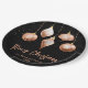 Celebrate the season with striking sophistication. This rose gold Christmas party plate features five hanging ornaments - each uniquely styled with glittering stars, snowflakes, florals, and harlequin patterns. Set against a deep black background with golden sparkles, it brings a luxurious, modern twist to your holiday table. Perfect for festive gatherings, office parties, or upscale winter events.