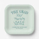 Celebre a su graduado con un estilo moderno y elegante con estos platos de papel para fiesta de graduación. Con un fondo a rayas verdes y blancas, el diseño muestra el título en negrita "THE GRAD CLUB" junto con una ilustración divertida de graduados lanzando sus gorras al aire.