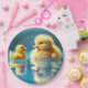 Plato De Papel Colapso amarillo con un pato de goma de juguete